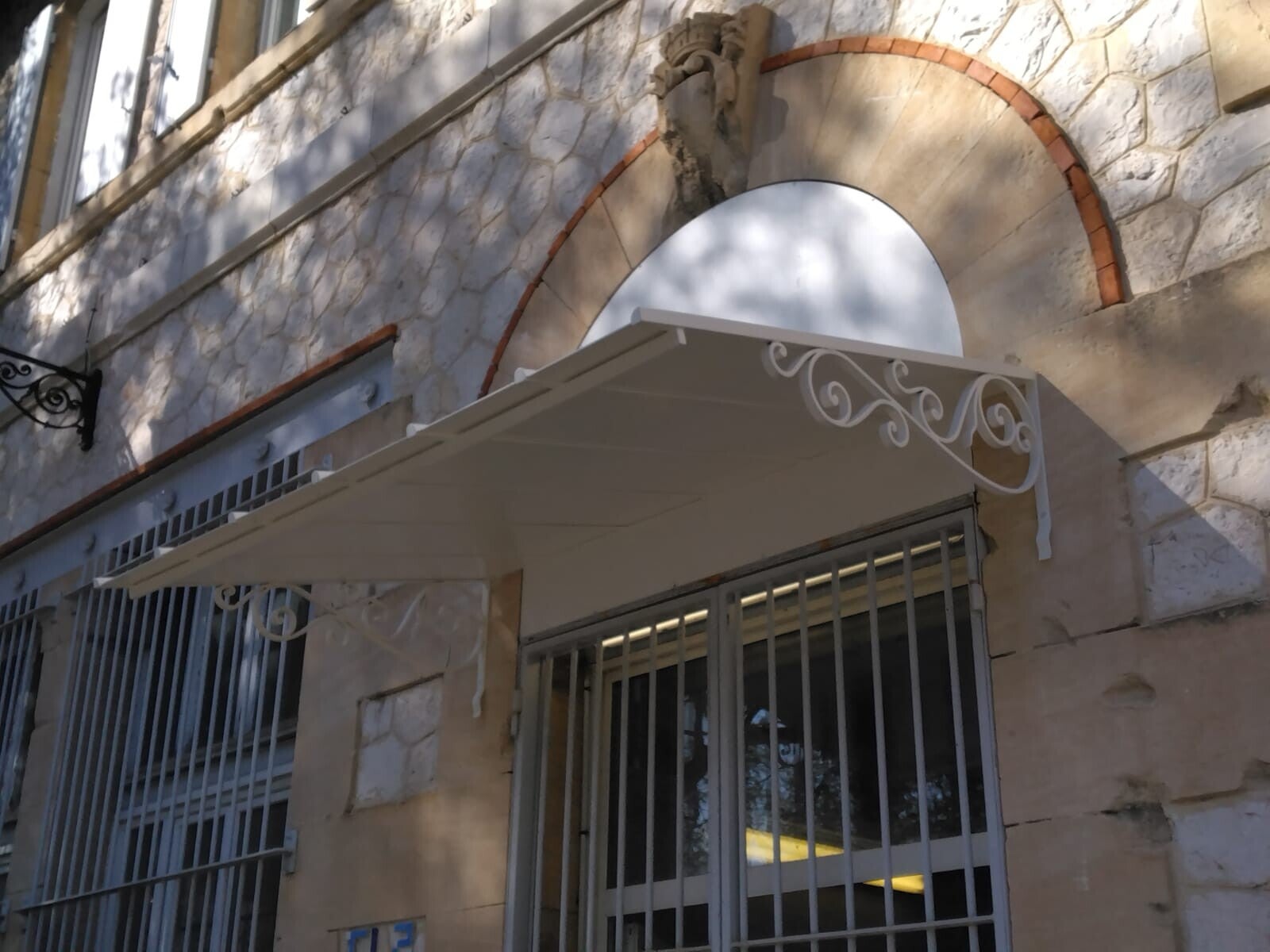 Sur nos marquises, la partie personnalisable concerne principalement les corbeaux, ces supports latéraux fixés à la façade et qui soutiennent l’ensemble.